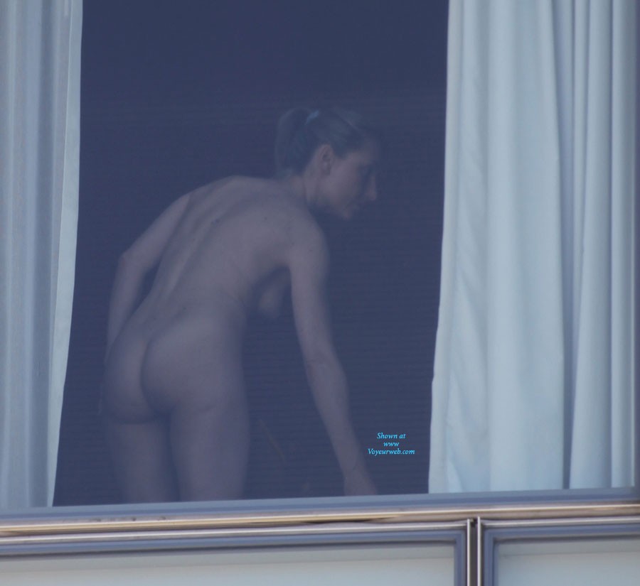 While walking through NYC one day I spotted this woman standing nude in her hotel window. It didn't take her long to notice I was taking her photos. I think once she saw that she had an audience it turned her on and she begin to be a Muse for me and teased me for over 35 minutes. She rubbed lotion on her entire body with the curtains open while I watched and often flashed me a smile.