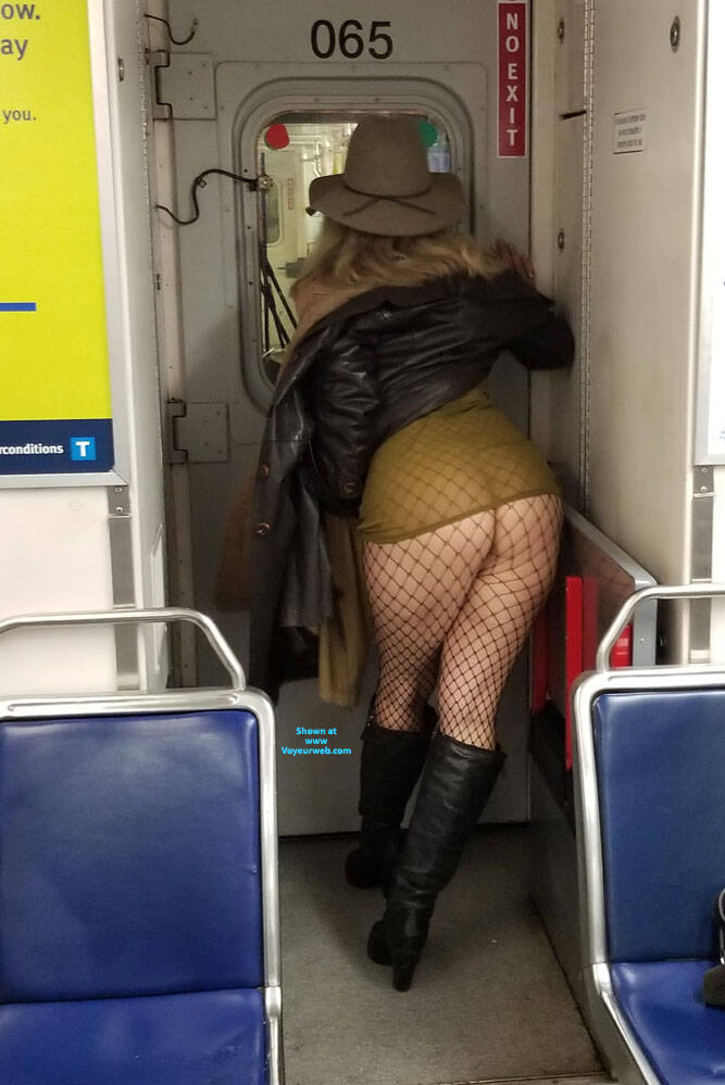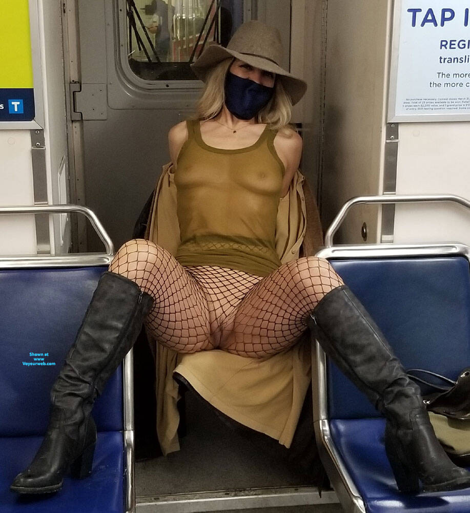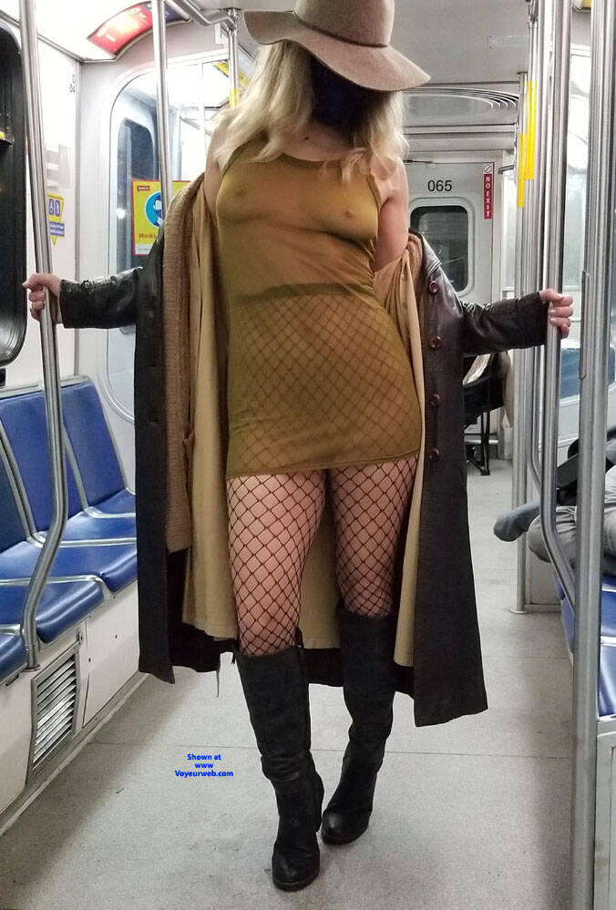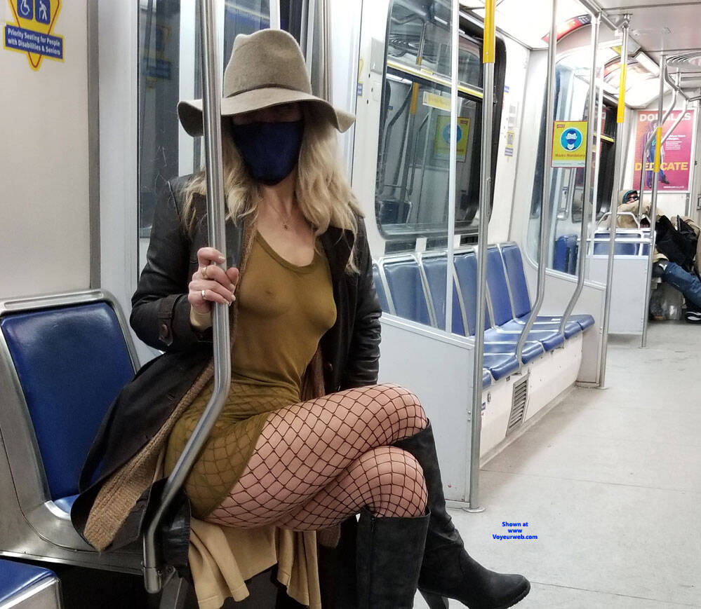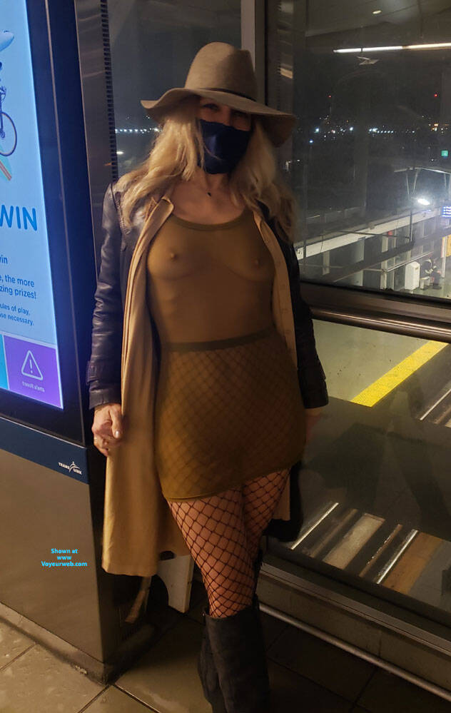 Firstly,  just want to send out a big thank you to everyone for all the great comments on our last contribution and voting it into the top three :)When we saw the "flashing on public transportation" theme for this month's contest we couldn't resist sharing these pics from a fun night out we had during the lockdowns. It had been months since she'd had an opportunity to get dressed up for a night out on the town, so I suggested to Mswest one evening that we should get out and make our own little party and maybe spread some joy along the way.  Next thing you know,  she said let's go and changed into this super hot outfit to wear under her jacket.  We grabbed a mickey of tequila, headed out and spent a couple of hours riding around town on our local train ...snapping pics along the way.  Hope you all enjoy as much as we did, and let us know if you want to see more because there's some fun video from that evening that we can share as well :)