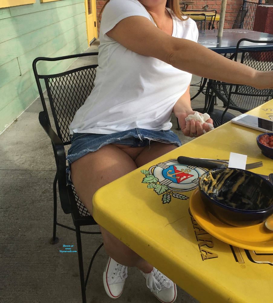 Just the ending pics of our day at the lake, the lunch date. Yes it was a chain Mexican restaurant, she was doing it for me. More to come with people in the background. By the way she's not a 20yr old model so comments appropriate..