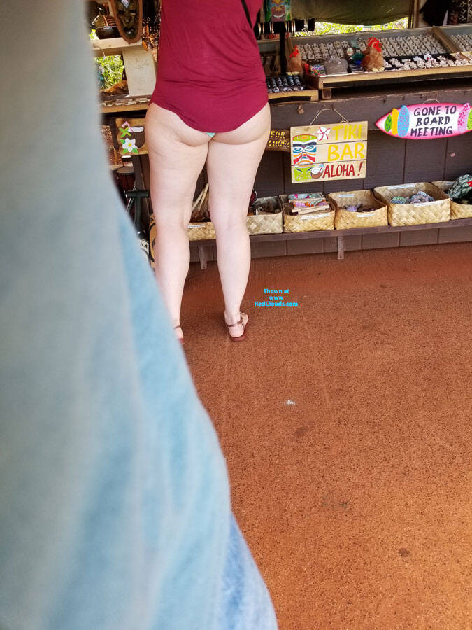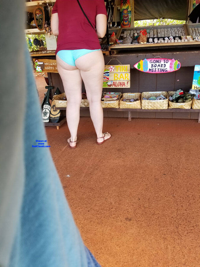 she was tipped off by the vendor and didn't care by flipping up shirt her tail