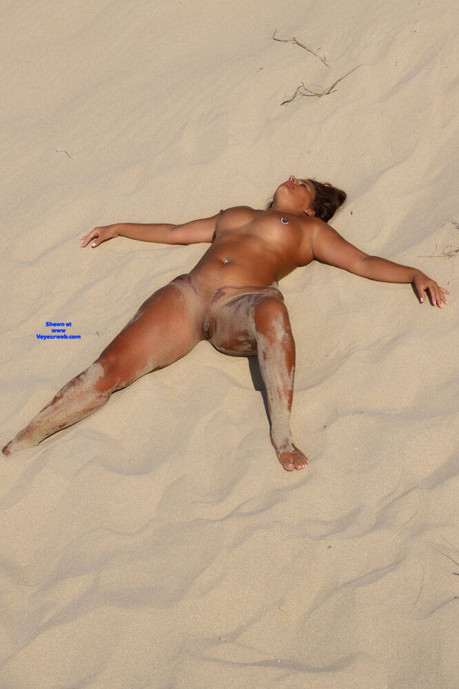 • Sand!  Wonderful all-over tan, love the piercings and tattoos, always admire your sexy cunt lips!