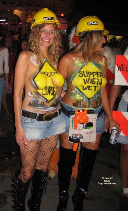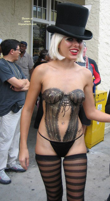 We went to Fanstasy Fest in Key West again, and had a great time! Took lots of pics, which I will share here. I always try my best to get a lot of the more elusive pussy shots. I love the girls who are daring enough to bare it all in public. I can't think of anything more sexy than a girl hanging out on the street, pussy in full view. The girls who come here are the best! Most spend hours posing for all of us horny photogs. Thanks girls! Well this is number 1 of 5, hopefully they will get a little better as we get closer to number 5! Hope you enjoy the pictures half as much as I enjoyed talking them! Oh, and a word for those of you who HATE Fantasy Fest pictures, and yet have time to bash each set of them in the comments section - GET A LIFE!! If you don't like them, don't look! Fantasy Fest is only once a year, so you only have to suffer through this once a year. The rest of the year you can see the WIS section fully devoted to nude beach pictures, which you apparently like so much (not that there is any lack of nude beach pics any month of the year in WIS).